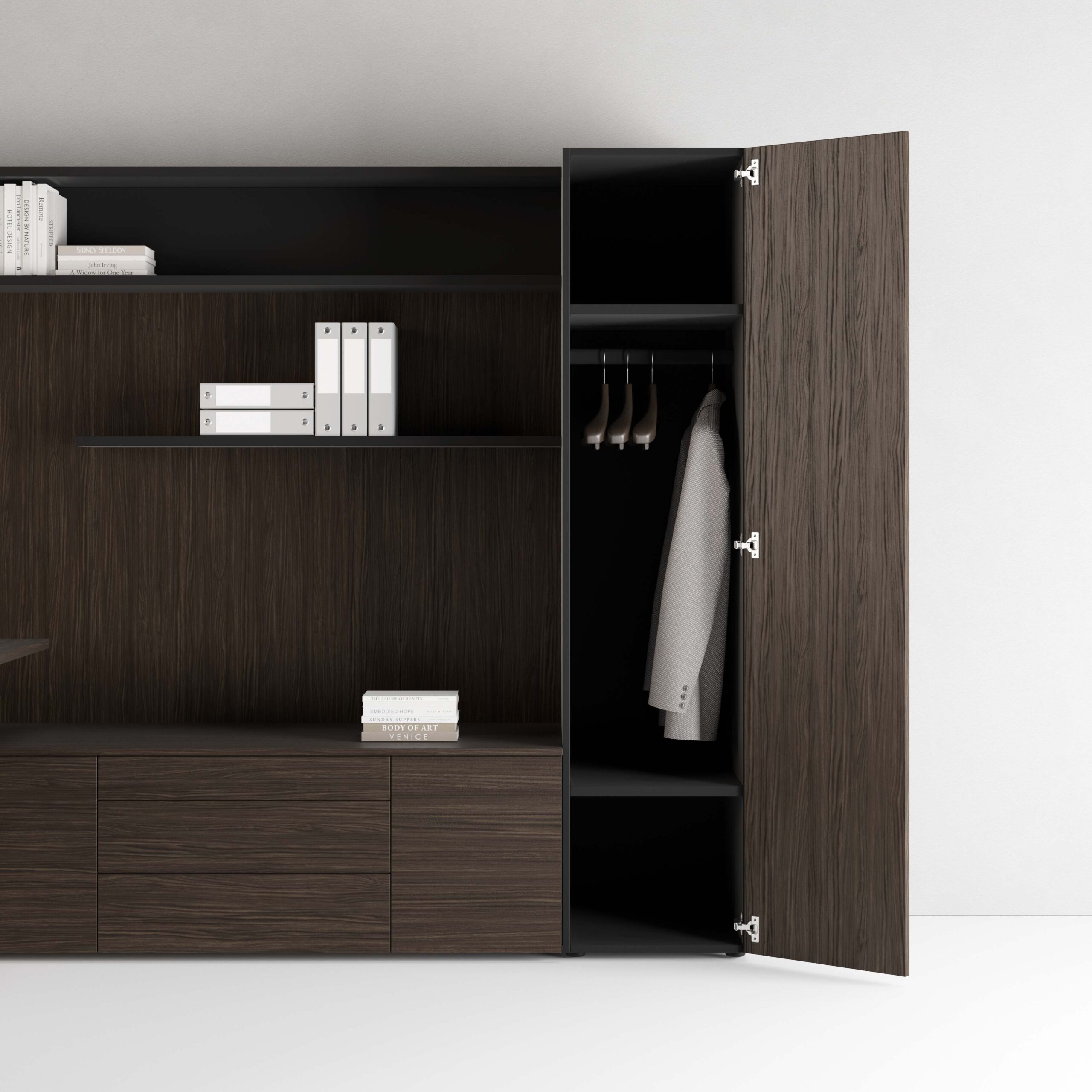 Service unit with provision for cable transit with vertebra; inspectable technical compartment with door.