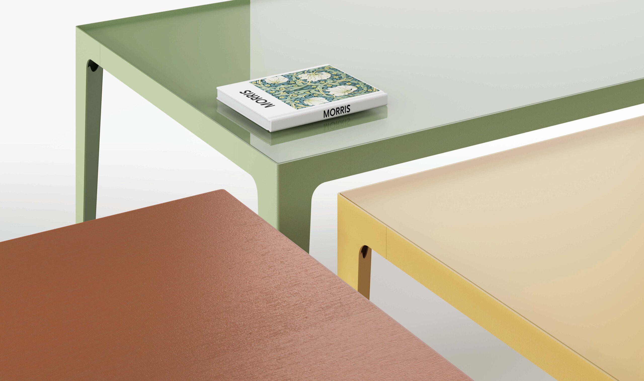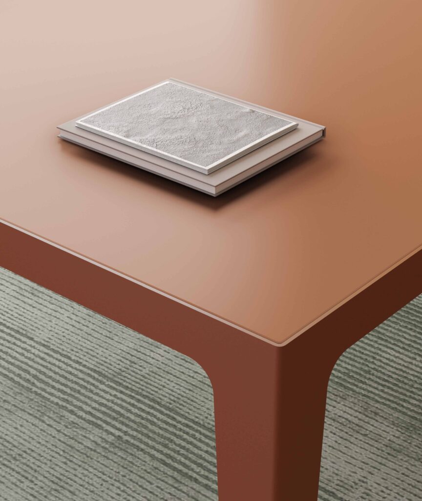 Coloured structures matching with extra-clear glass tops make each space unique and personalised.